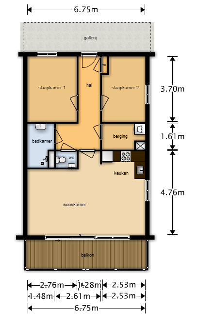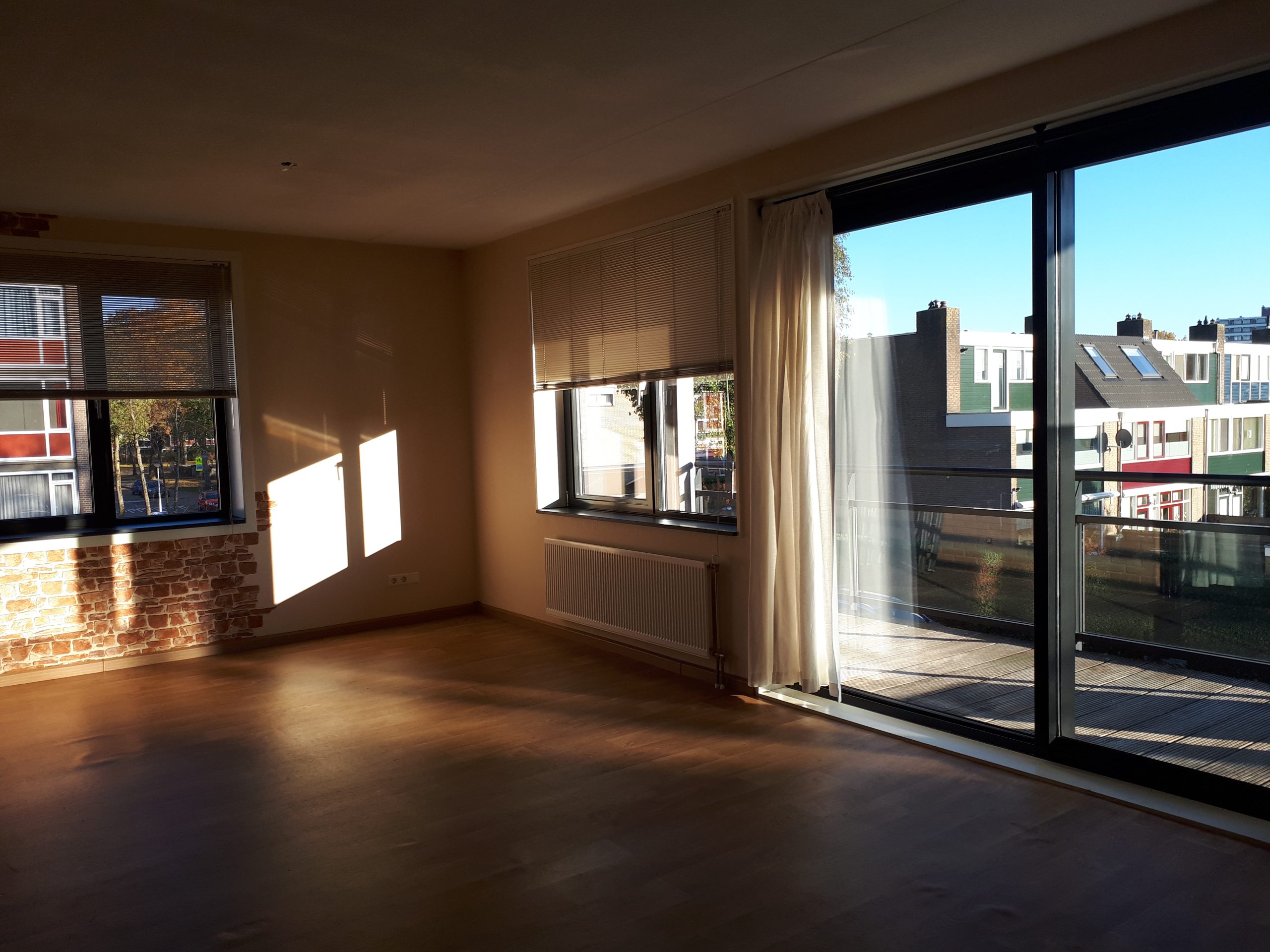 Entree, hal, toilet met fonteintje, op de zon gerichte woonkamer met veel licht, een grote schuifpui naar het balkon (12 m2), een extra zijraam, open keuken met koelkast, combi magnetron, gaskookplaat, afzuigkap en carrouselkast, separate bergruimte met aansluiting voor wasmachine en droger, 2 slaapkamers, badkamer met inloopdouche en wastafel. Verwarming en warm water d.m.v. CV-combiketel (2008). Het appartement is grotendeels voorzien van een vinylvloer.