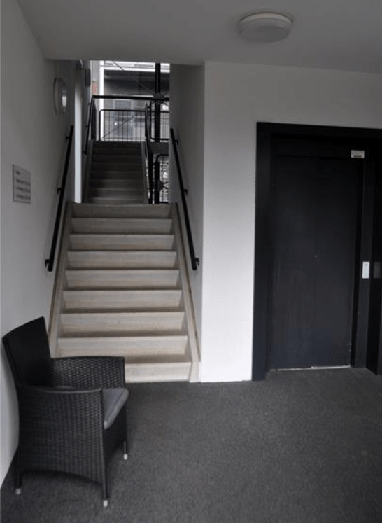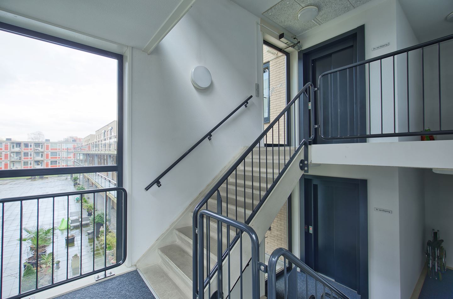 Het appartementengebouw en de overdekte parkeergarage beschikken over een beveiligde toegang d.m.v. een videofoon installatie (2019) respectievelijk afstandsbediening. Vanuit uw appartement ziet u dus op beeld wie er voor de entree van de centrale ingang staat. Er is een lift die toegang geeft naar de 2 verdiepingen en naar de kelder.